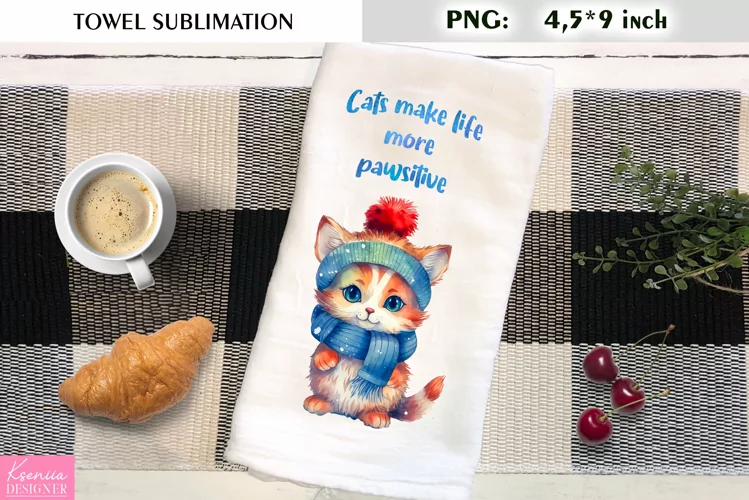 Tea Towel Designs Tea Towel Sublimation Kitchen Towel Sublimation Dish Towel Sublimation Kitchen Towel Sublimation Designs Gift Idea Sublimation Hand Towel Designs Watercolor Cat Towel Cat Quotes Towel Cat Lovers Christmas Gift