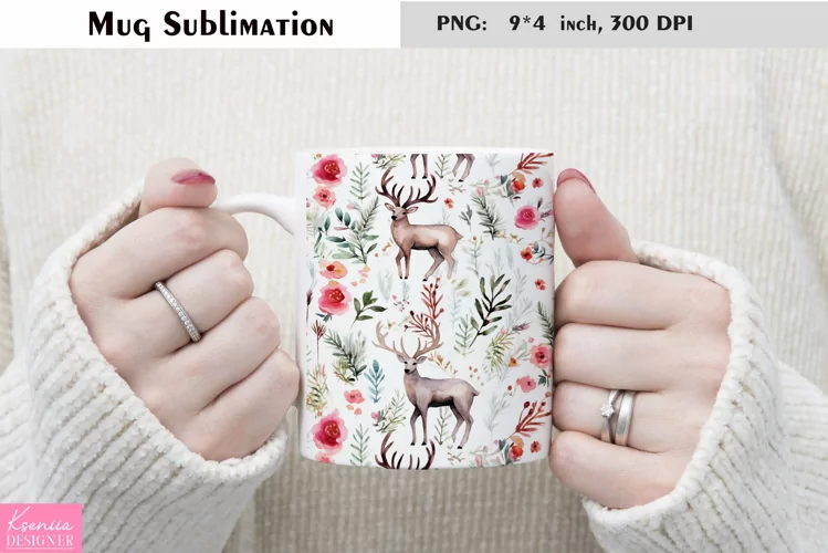Watercolor Reindeer|Colorful Christmas Mug Sublimation