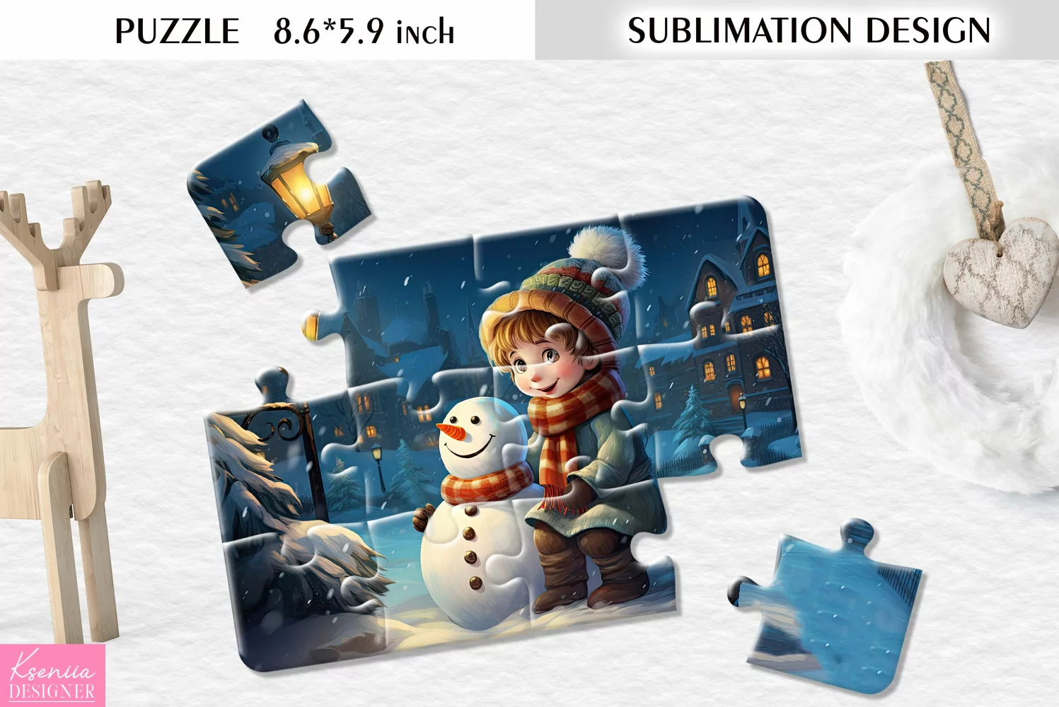 Cute Watercolor Snowman and Boy| Sublimation Puzzle Design