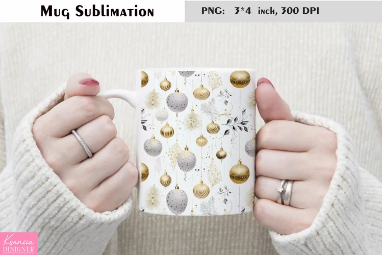 Gold Christmas Ball and Snowflakes | Winter Mug Sublimation