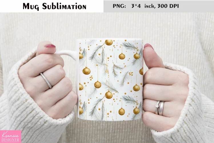 Gold Christmas Ball Design| Winter Mug Sublimation example image 1