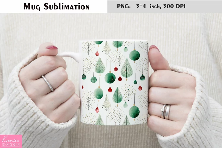 Watercolor Green Christmas Ball and Tree|Winter Mug Design example image 1