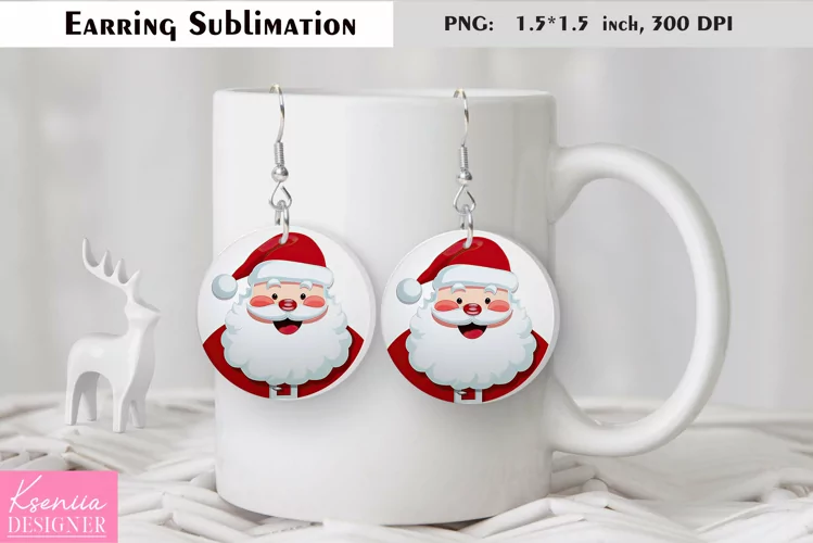 Earring Sublimation Winter Earring Design Winter Earrings Sublimation Girl Earring Sublimation Woman Earring Sublimation Cute New Year Earrings Sublimation 3d Round Earrings Png Christmas Party Earring Kids Christmas 3d Snowflakes Santa Claus Earring Sublimation