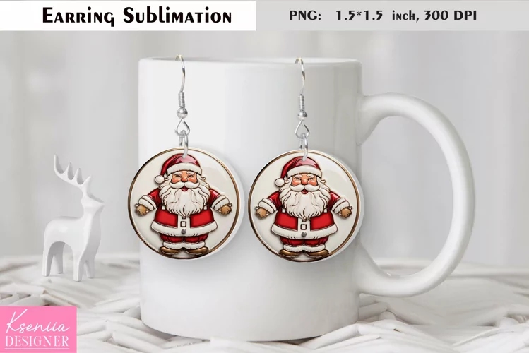 Earring Sublimation Winter Earring Design Winter Earrings Sublimation Girl Earring Sublimation Woman Earring Sublimation Cute New Year Earrings Sublimation 3d Round Earrings Png Christmas Party Earring Kids Christmas 3d Snowflakes Santa Claus Earring Sublimation