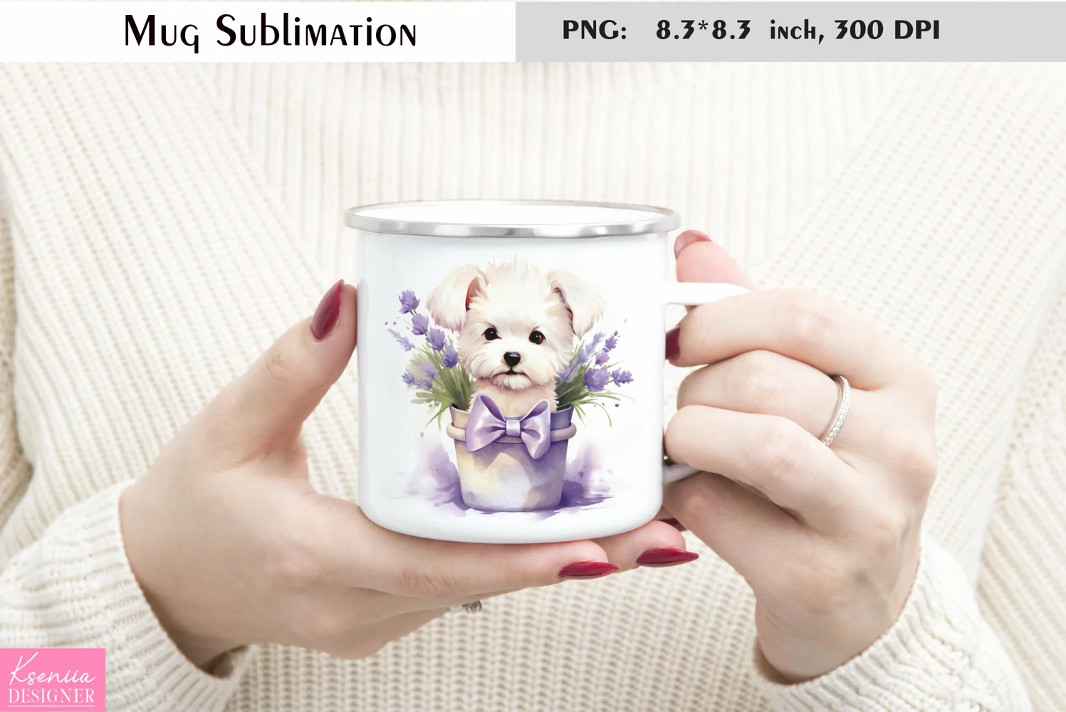 Similar Design Products to White Puppy with Lavender|Enamel Mug