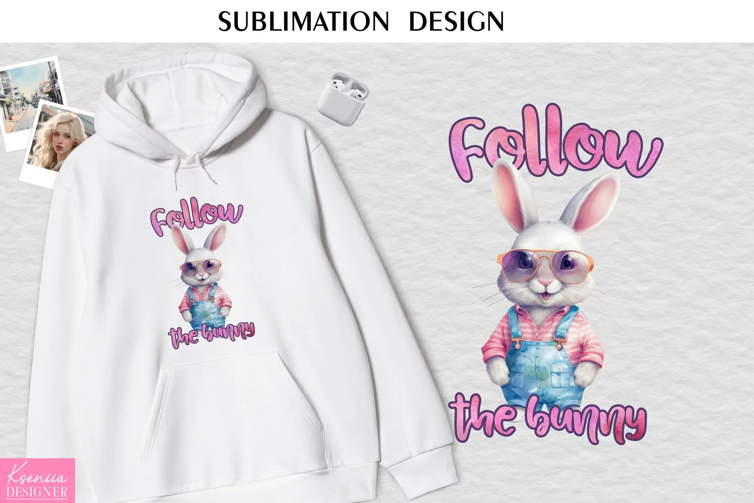 Follow the Bunny|Easter Watercolor Rabbit T Shirt Design