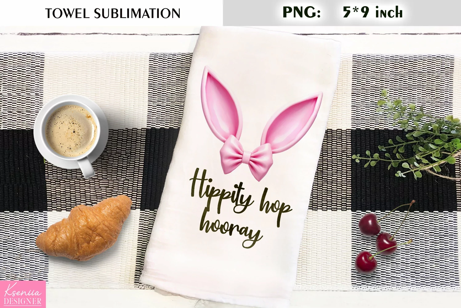 Funny Pink Bunny Ears|Watercolor Kitchen Towel Sublimation