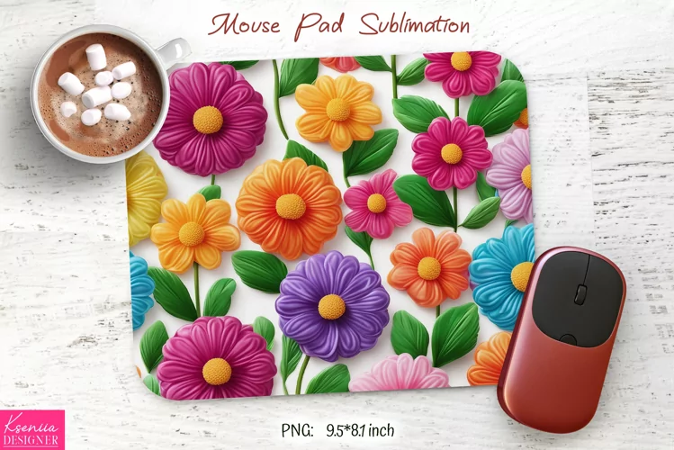 Bright Meadow Flowers Design|Flower Mouse Pad Sublimation