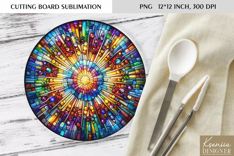 ColorfulStained Glass Design|Round Cutting Board Sublimation