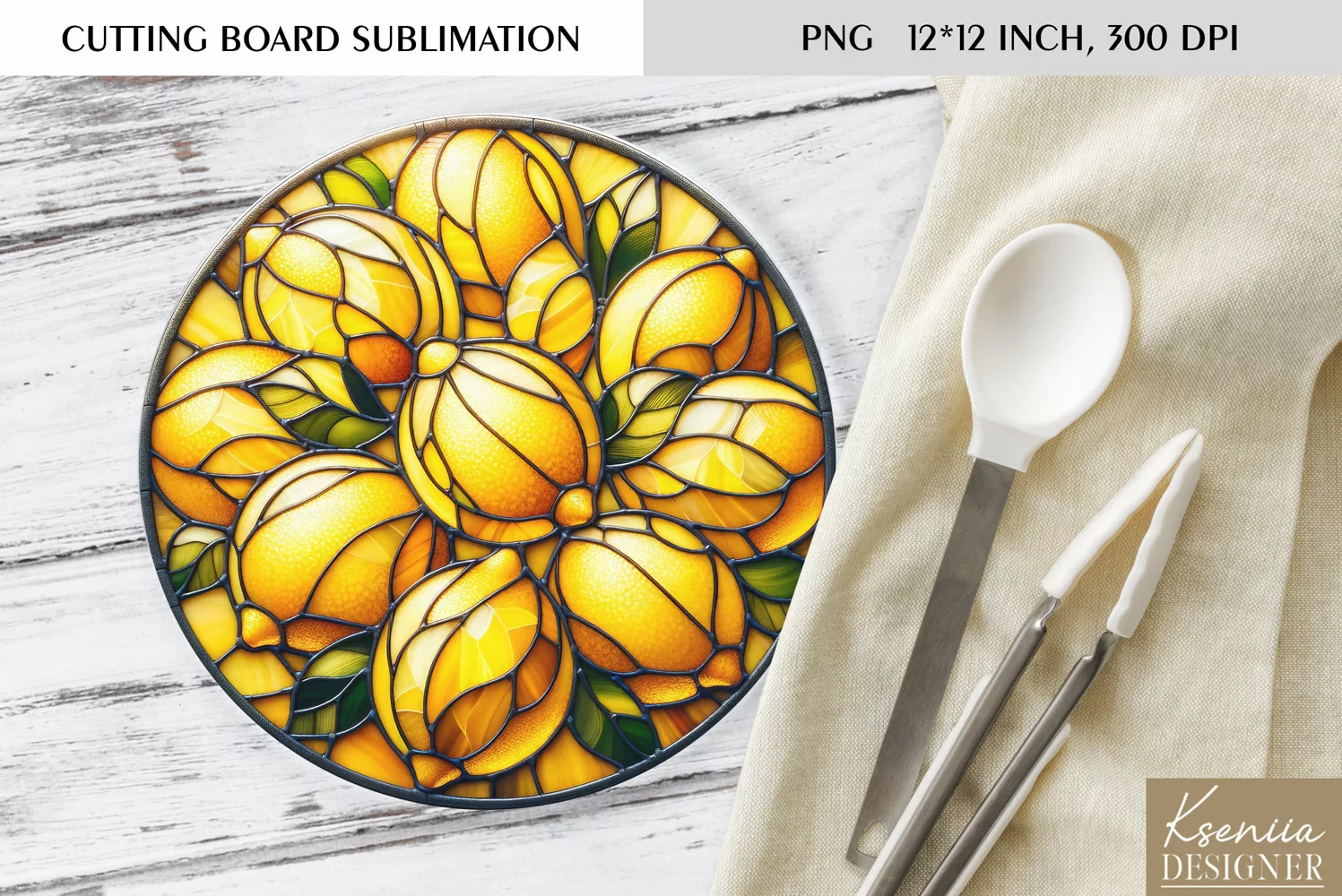 Fruit Stained Glass Design|Round Cutting Board Design example image 1