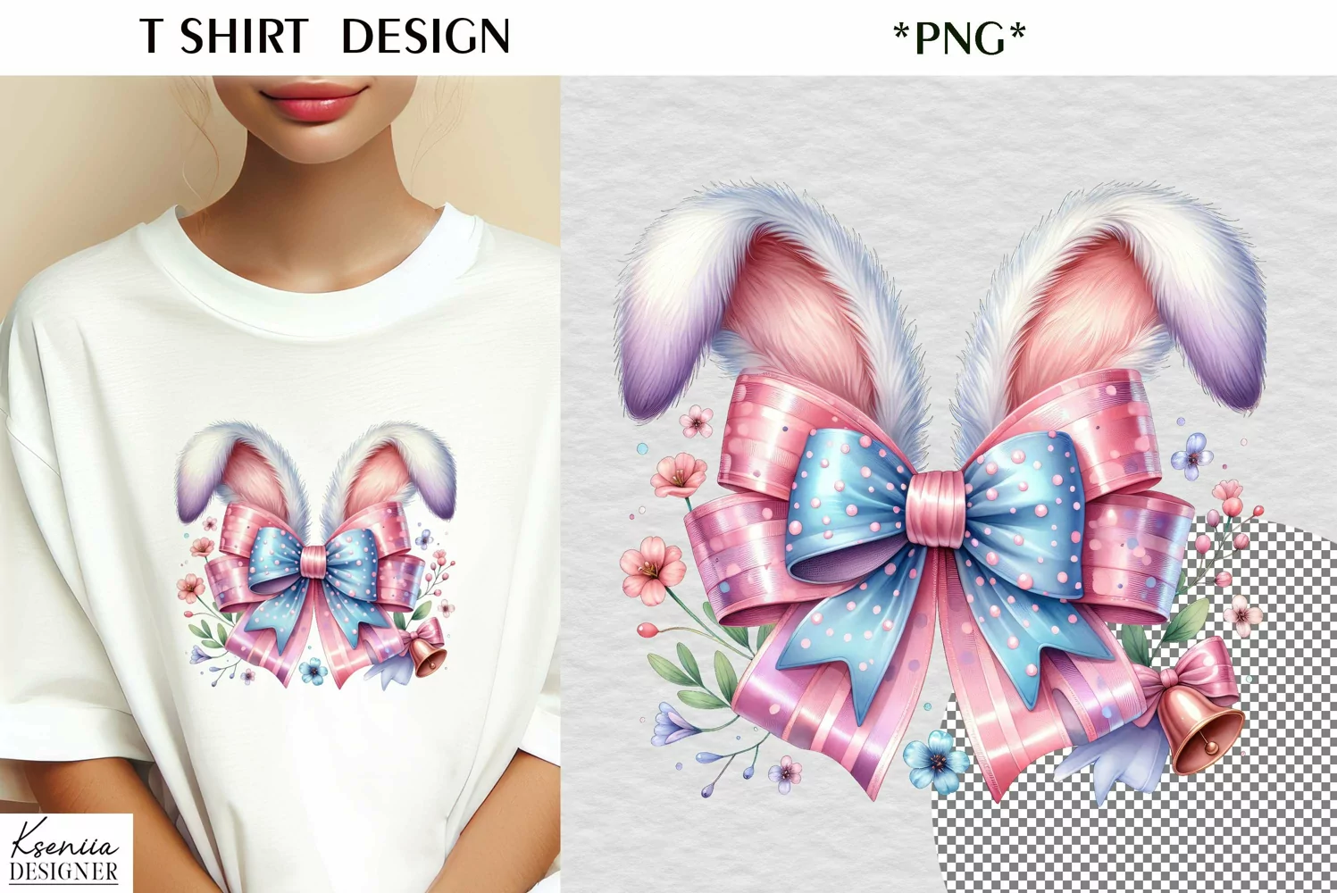 Silk Easter Bow|Fluffy Easter Bunny Ears T Shirt Design example image 1
