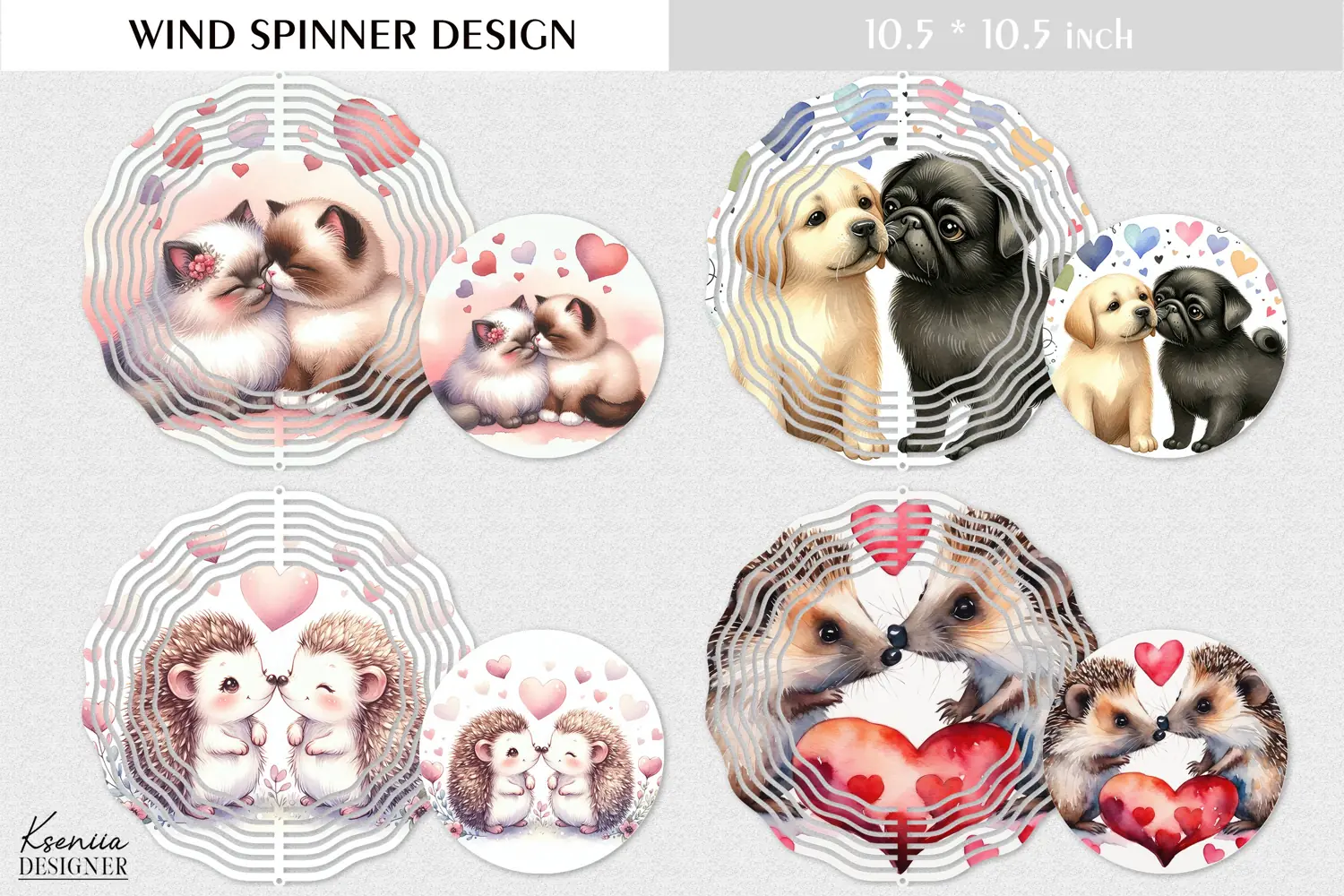 Kiss|Love|Animal | Watercolor Wind Spinner Design