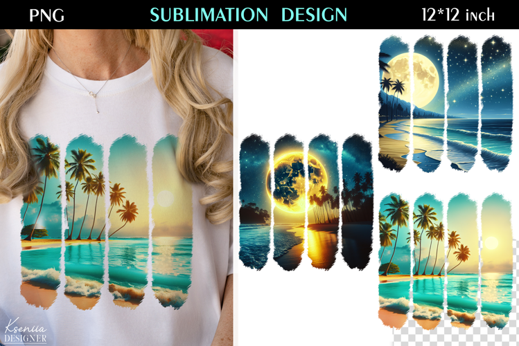 Watercolor Summer Beach T Shirt Sublimation|Moon Night example image 1