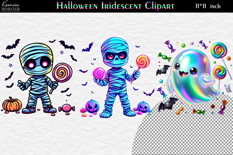 Neon Halloween Clipart | Cute Funny Characters|Mummy |Ghost