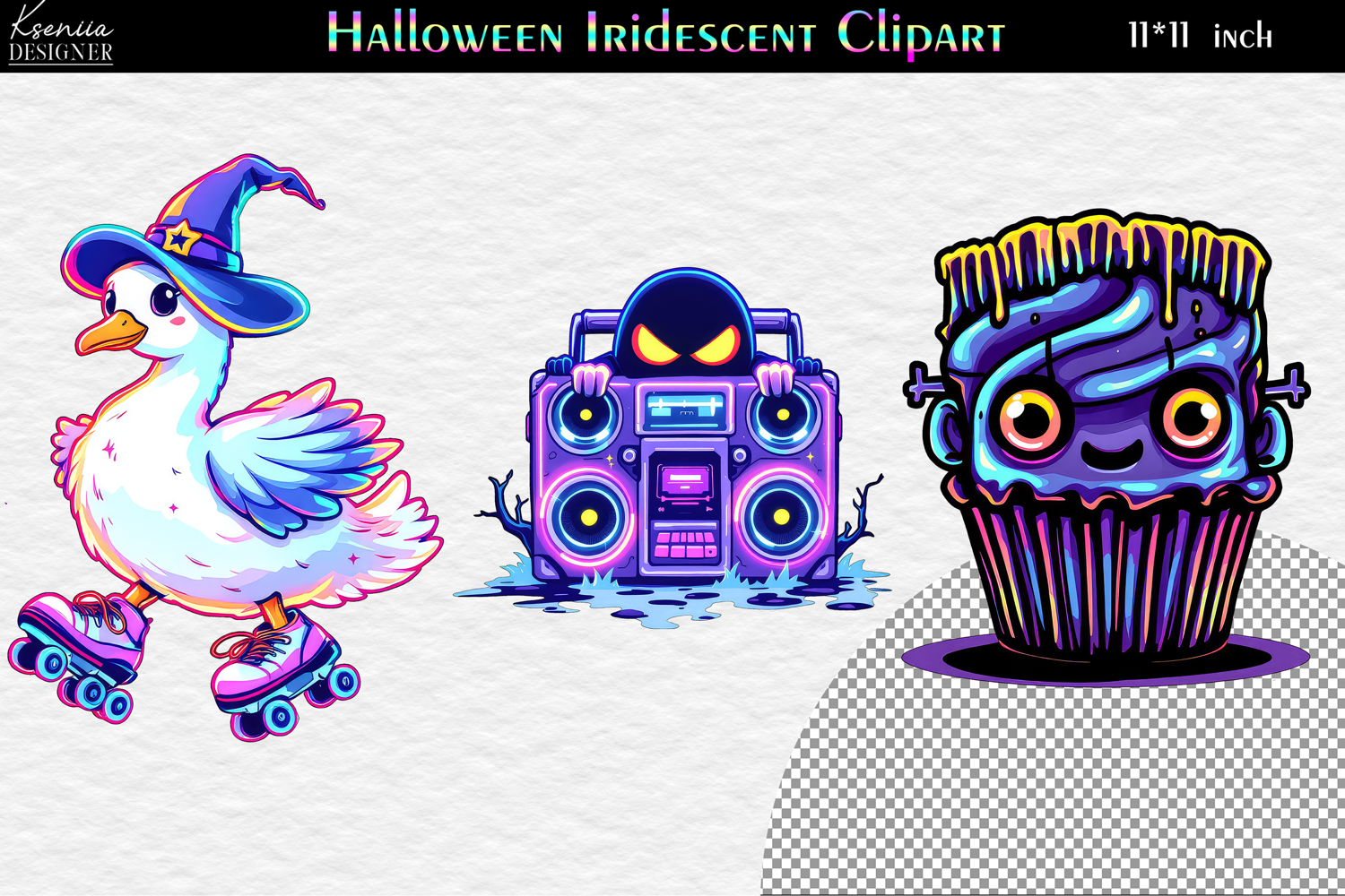 Neon Halloween Clipart|Cute Funny Characters|Goose|Monster