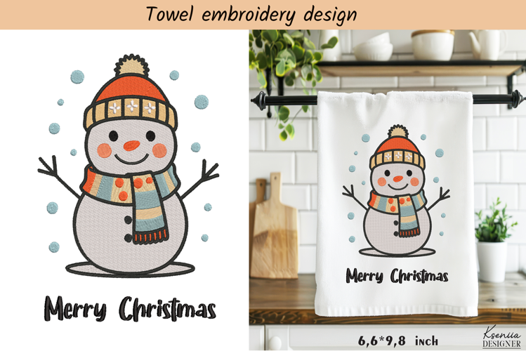Funny Snowman|Christmas Embroidery Towel Design example image 1