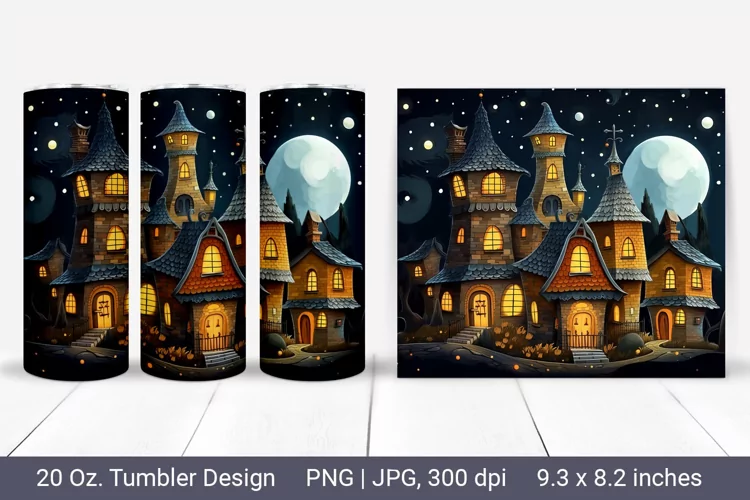 3d Sublimation Halloween Tumbler 3d Halloween 3d Haunted House 20 Oz Skinny Tumbler 20 Oz Tumbler Wrap 3d Tumbler Wrap 3d Halloween Tumbler Wrap