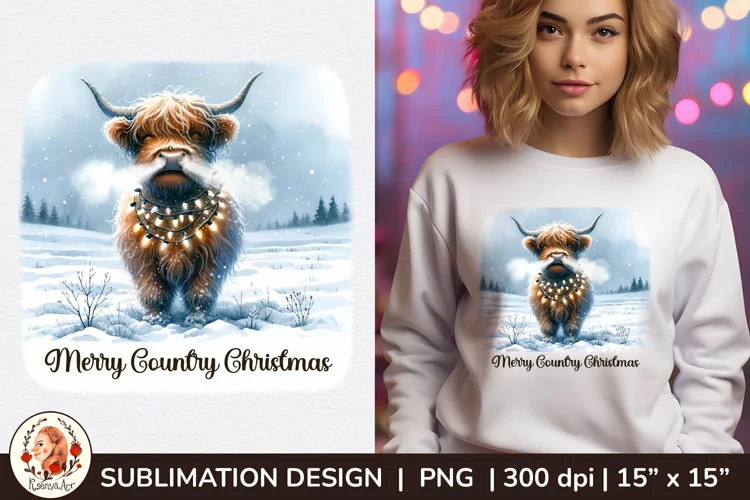 Similar Design Products to Highland Christmas Cow Sublimation, Country Christmas