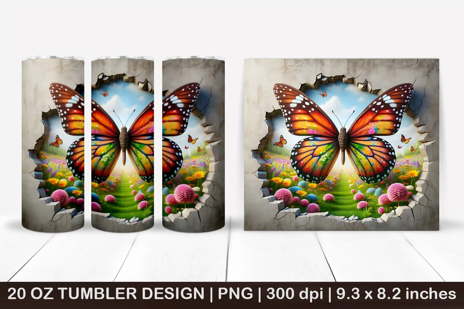 Butterfly Tumbler Spring Tumbler Summer Tumbler 20 Oz Tumbler Wrap 3d Tumbler 3d Tumbler Wrap 3d Tumbler Sublimation 3d Cracked Wall 3d Brocken Wall Brocken Wall