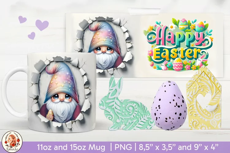 3d Gnome Easter Gnome Cracked Wall Gnome Mug Easter Mug Sublimation 3d Mug 11oz Mug Wrap Easter Mug Wrap Broken Wall 3d Mug Easter