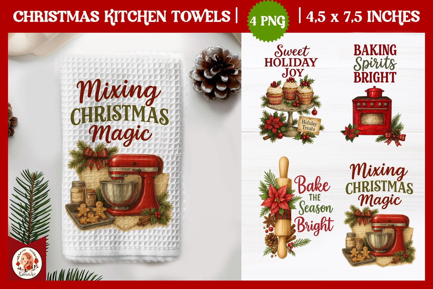 Vintage Christmas Kitchen Towel, Baking Sweets example image 1