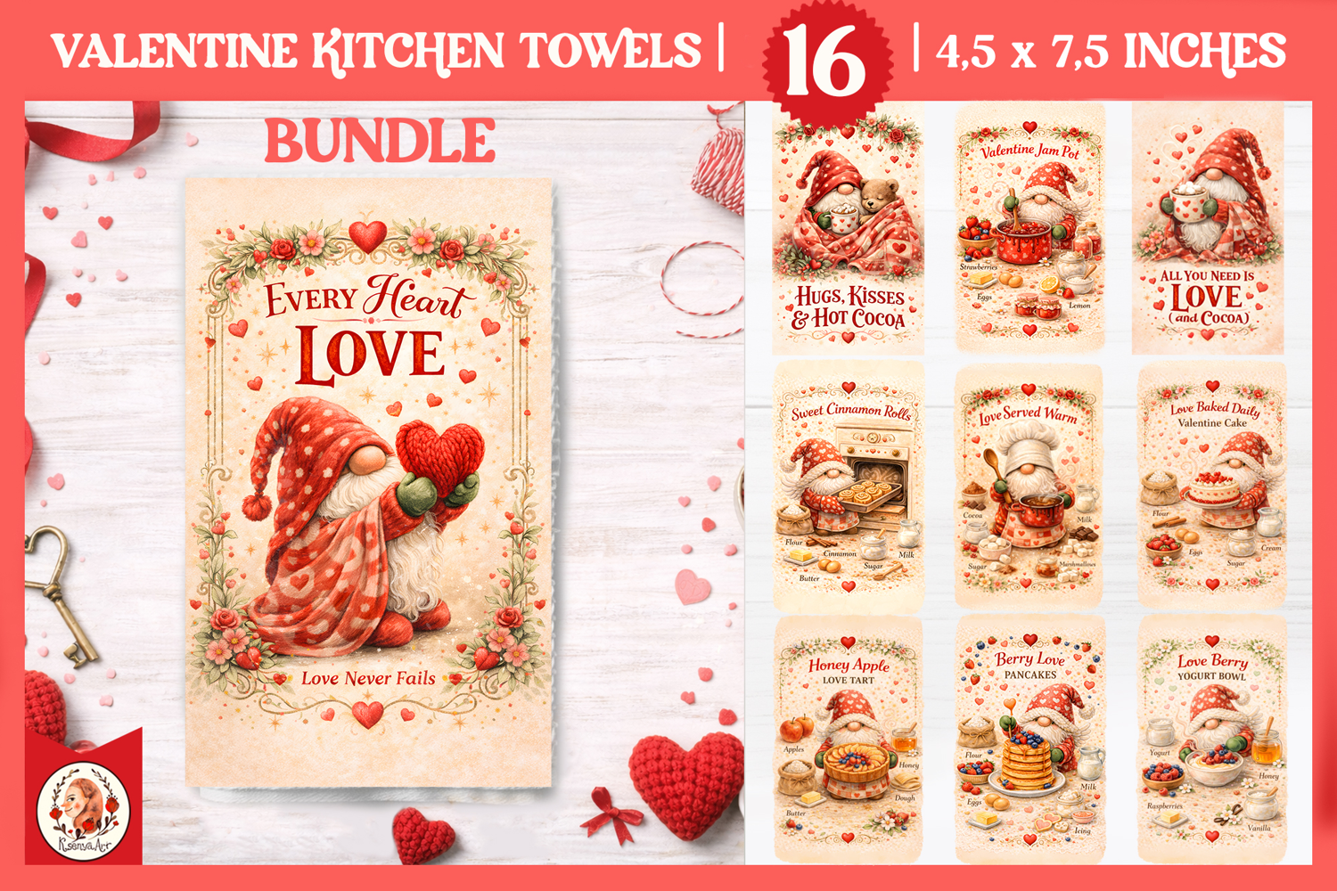 Similar Design Products to Valentines Day Kitchen Towel Bundle, Cute Valentine Gnome