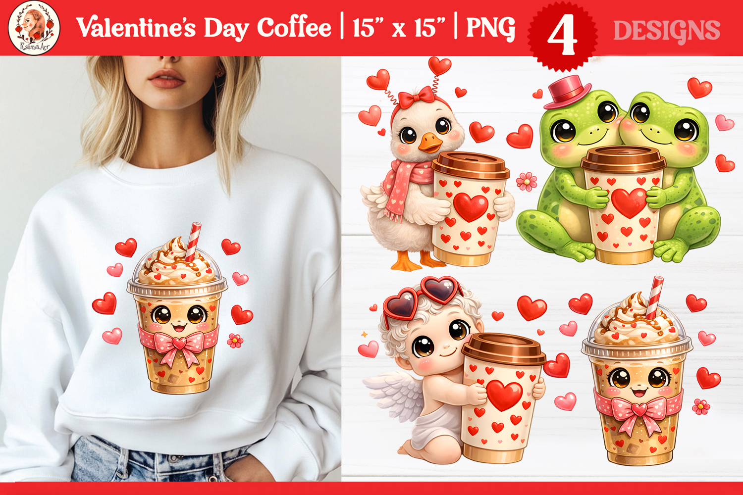 Valentine’s Day Cute Animals with coffee sublimation