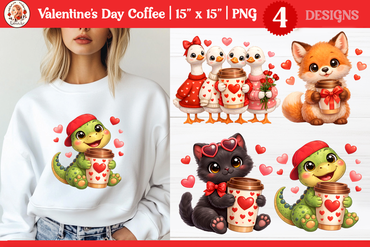 Valentine’s Day Cute Animals with coffee sublimation example image 1