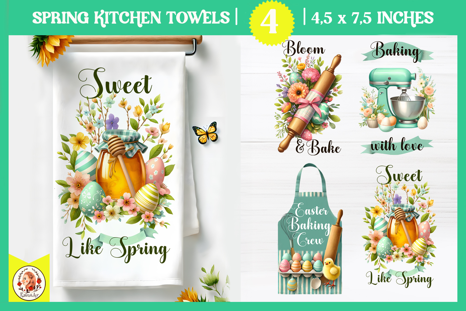 Vintage Easter Kitchen Towel Design,Easter Baking Sublimation