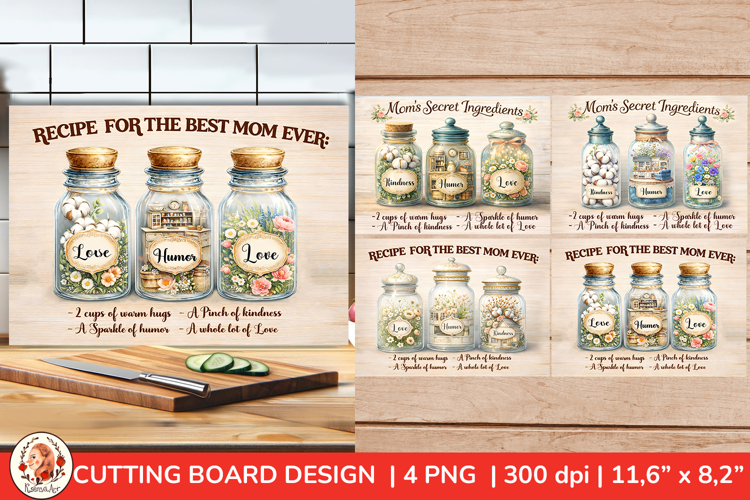 Similar Design Products to Recipe for the Best Mom, Mothers day cutting board PNG