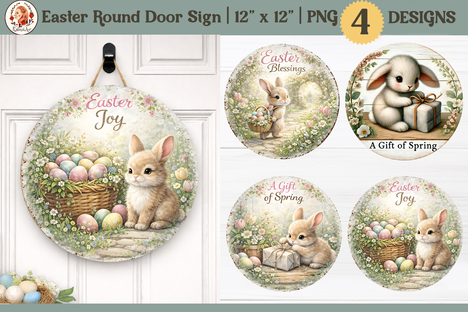Easter Bunny Round Sign,Easter Bunny Door Hanger Sublimation example image 1