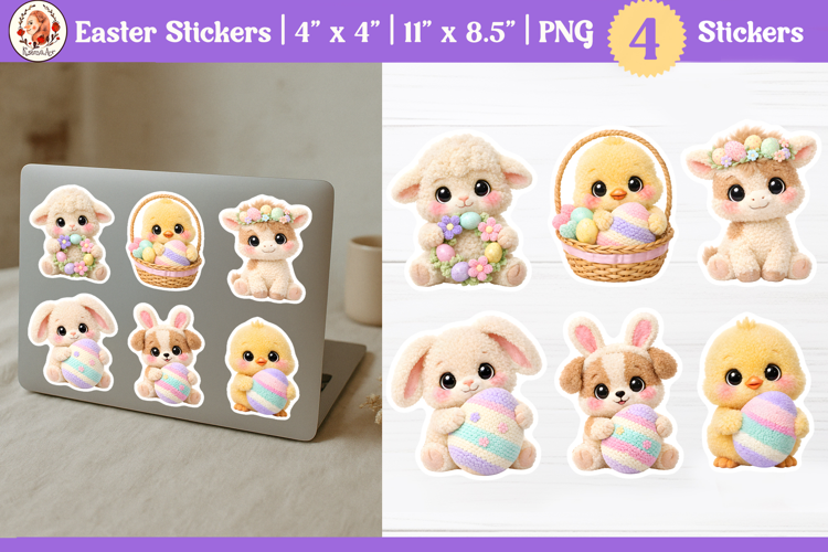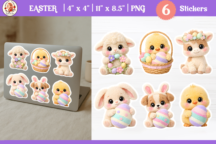 This adorable collection features 6 baby animals with big expressive eyes, soft fluffy fur, and gentle pastel details, styled in a cozy, heart-melting Easter theme.