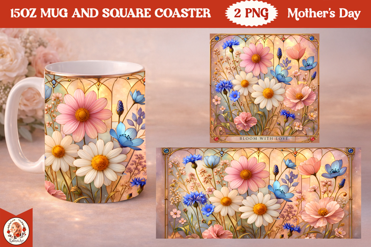 15oz Mug Mothers Day Gifts Floral Mug Sublimation Peony Mug Wrap Mothers Day Coaster Design Luxury Mothers Day Mug Peony Floral 15oz Mug Wrap Peony Floral Mug Wrap Stained Glass Floral Mug