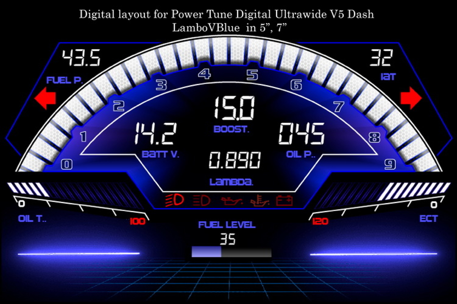 Digital Layout for Power Tune Digital Ultrawide V5 Dash LamboVBlue in 5'' / 7''| Car Styling GUI