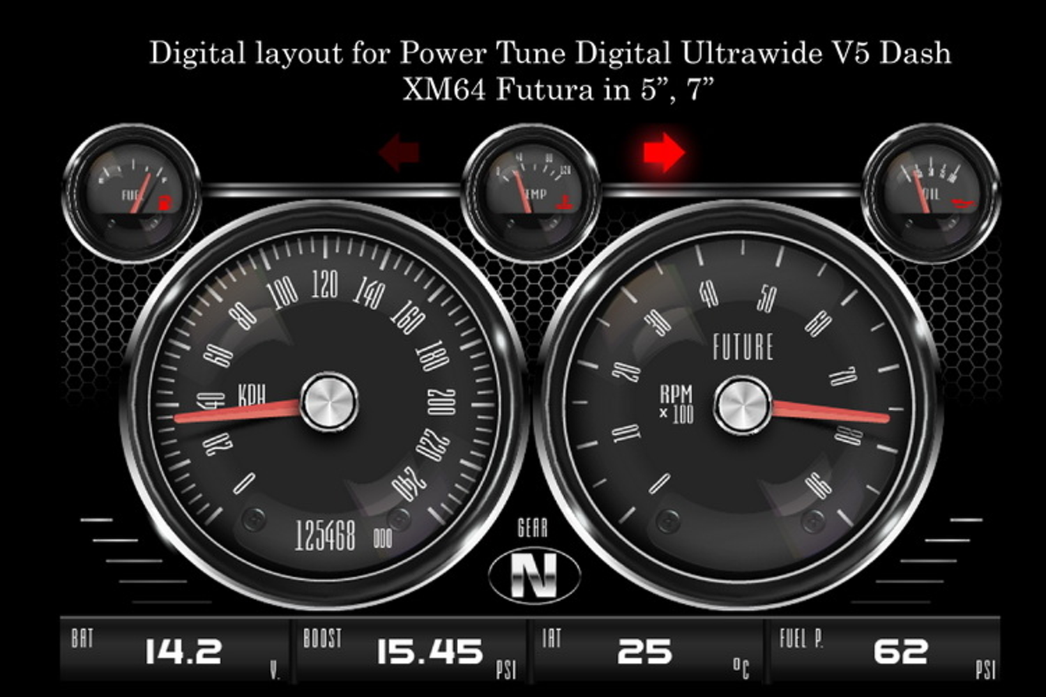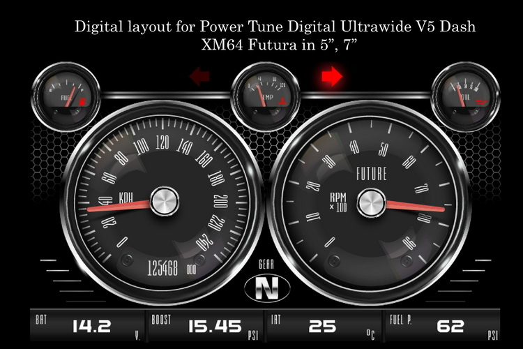 Digital Layout for Power Tune Digital Ultrawide V5 Dash XM64Futura in 5'' / 7''| Car Styling GUI