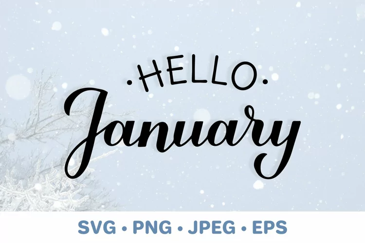 Hello January. Handwritten winter quote.