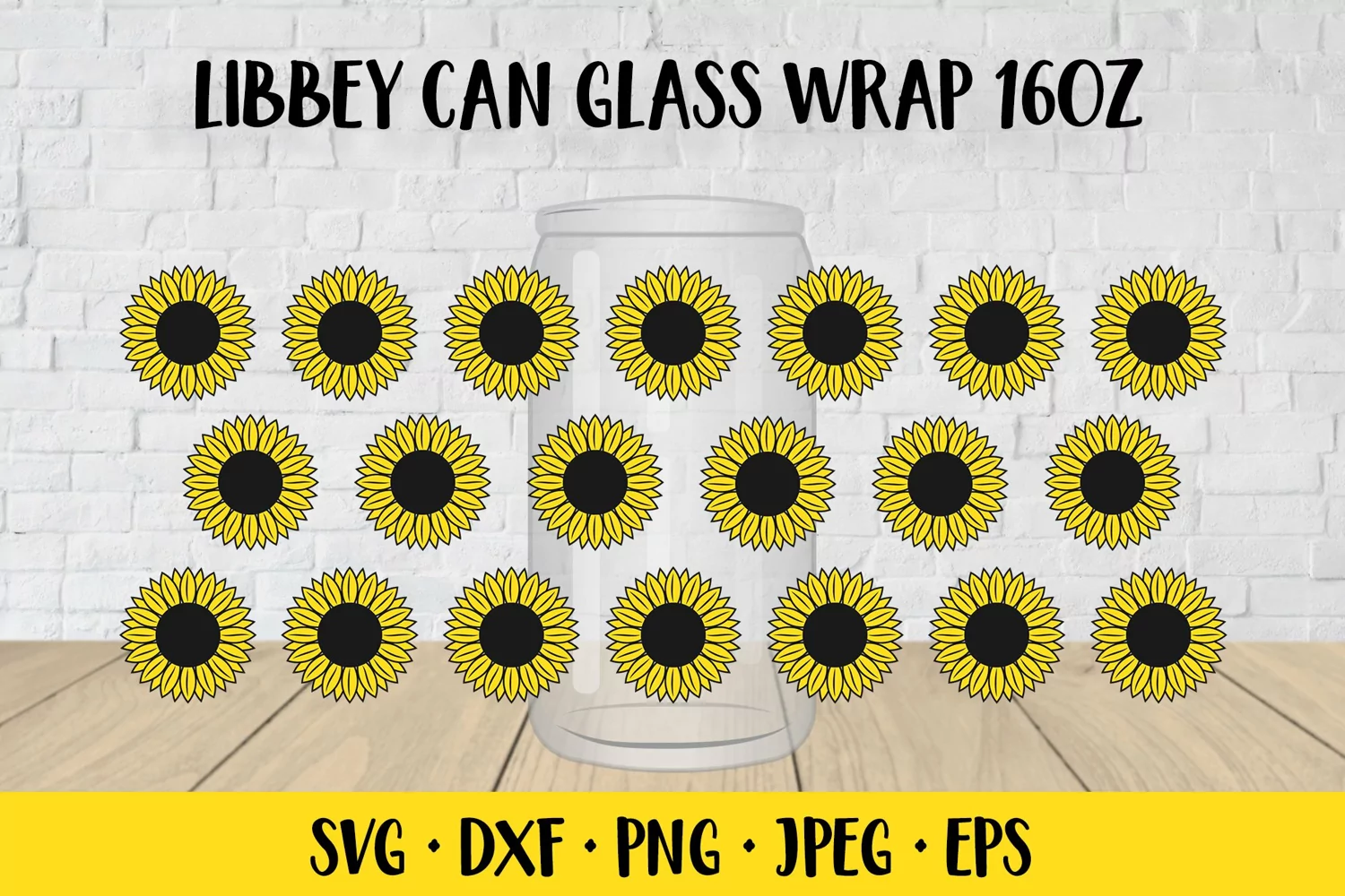 Sunflower beer can glass wrap template SVG. Soda glass can