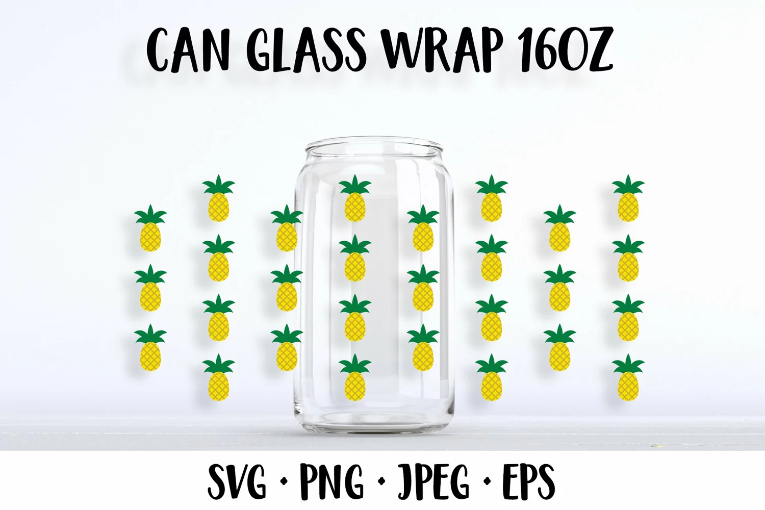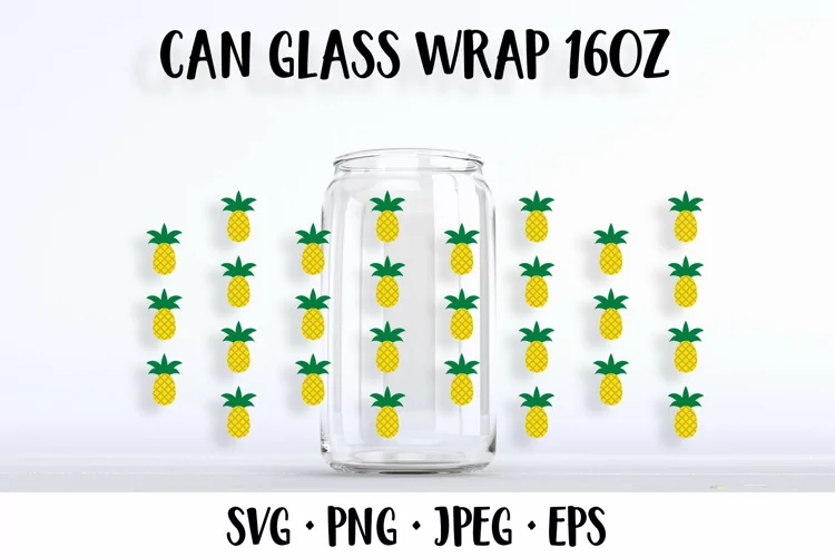 Pineapple beer can glass wrap template SVG. Summer glass can