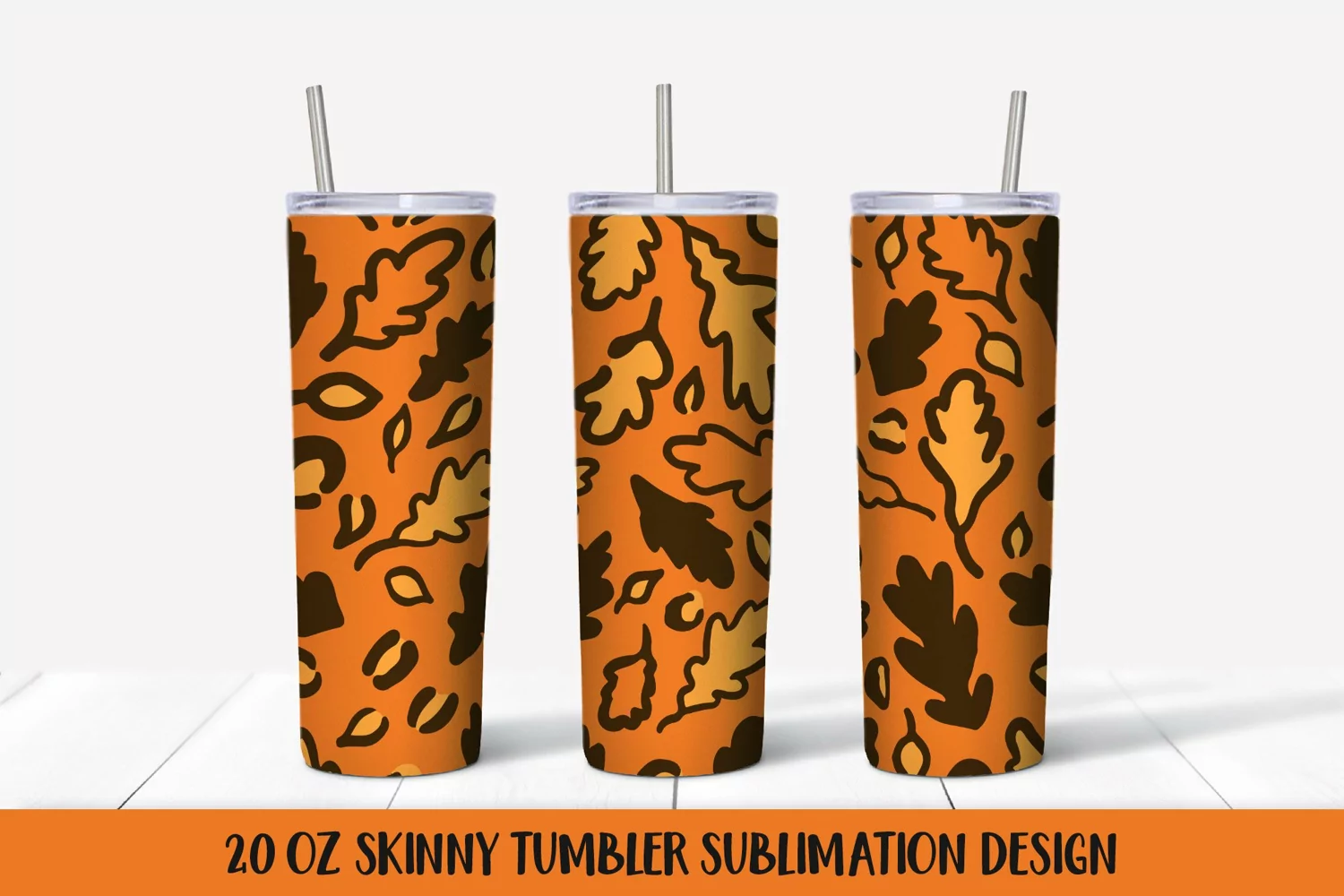 Print Design Autumn Fall Leaves Orange Leopard Wrap Sublimation Tumbler