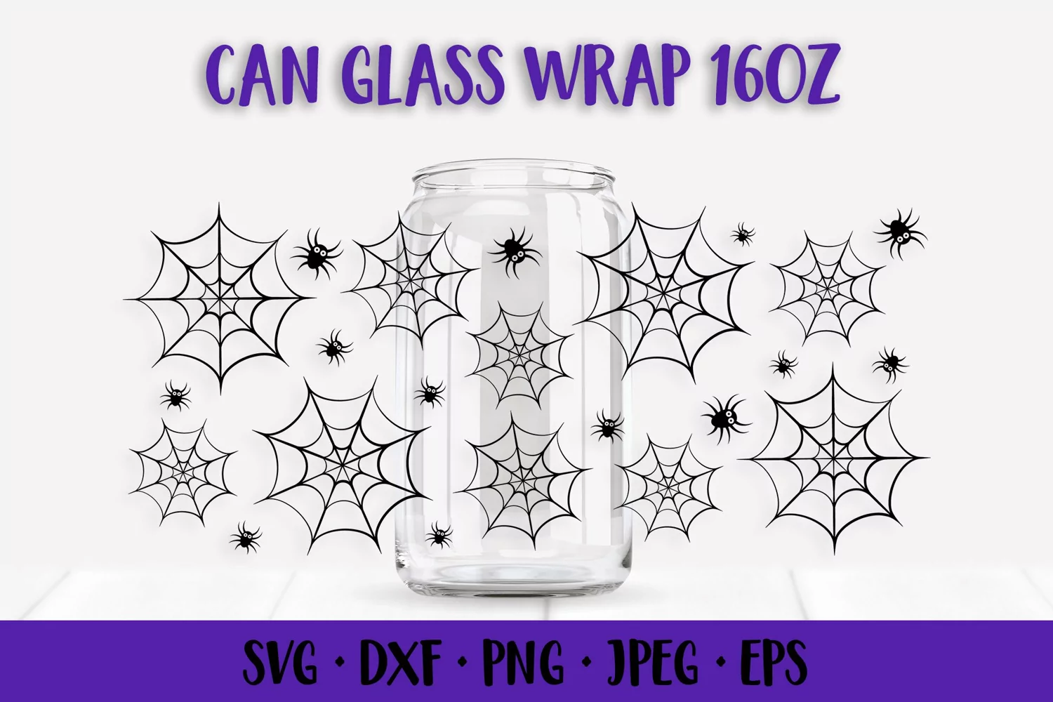 Halloween Can Glass Wrap SVG. Spider Web Glass Can