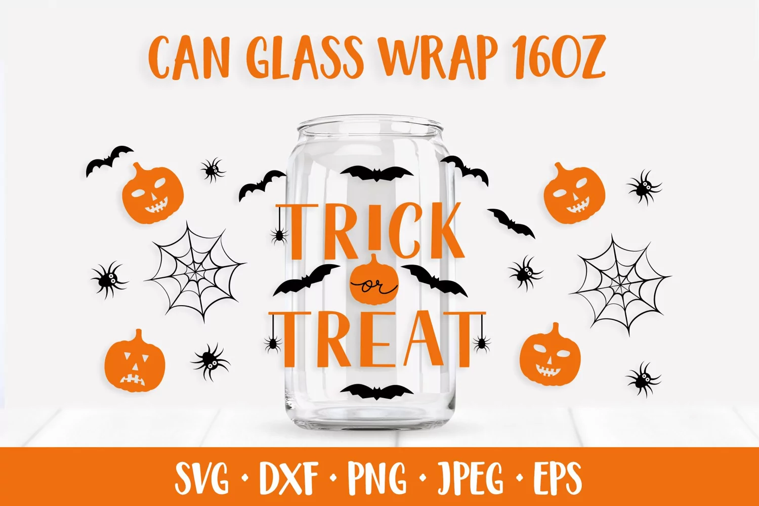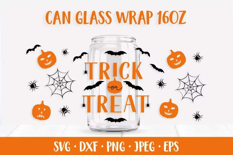 Halloween Glass Can Wrap SVG. Trick or Treat Can Glass