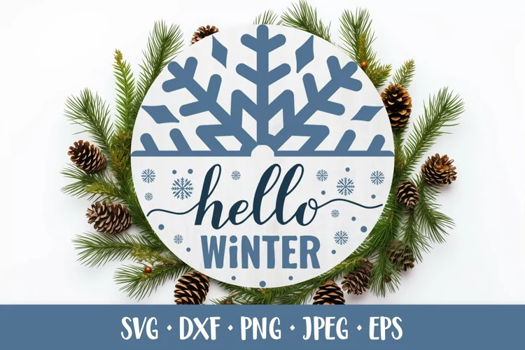 Hello Winter SVG. Winter quote. Seasonal round door sign