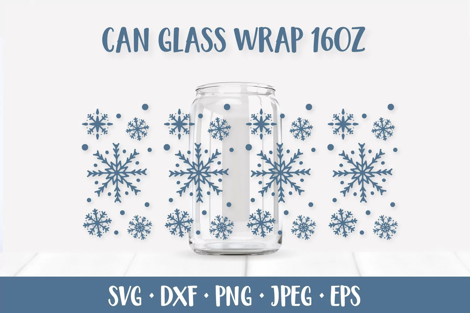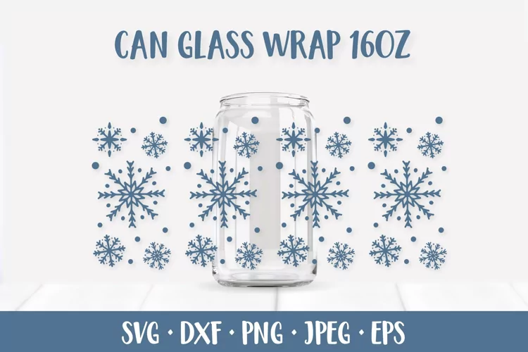 Snowflake Can Glass Wrap SVG. Winter Glass Can