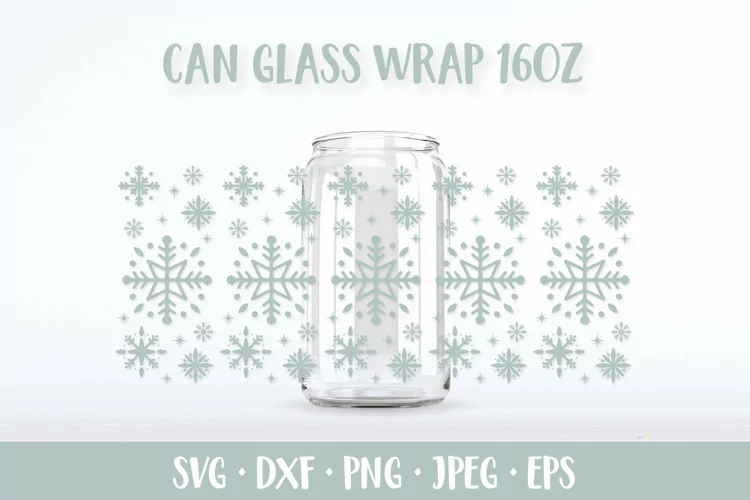 Snowflakes Can Glass Wrap. Winter Glass Can SVG
