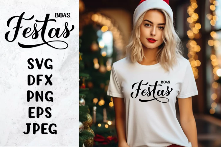 Boas Festas. Happy Holidays in Portuguese hand lettered SVG