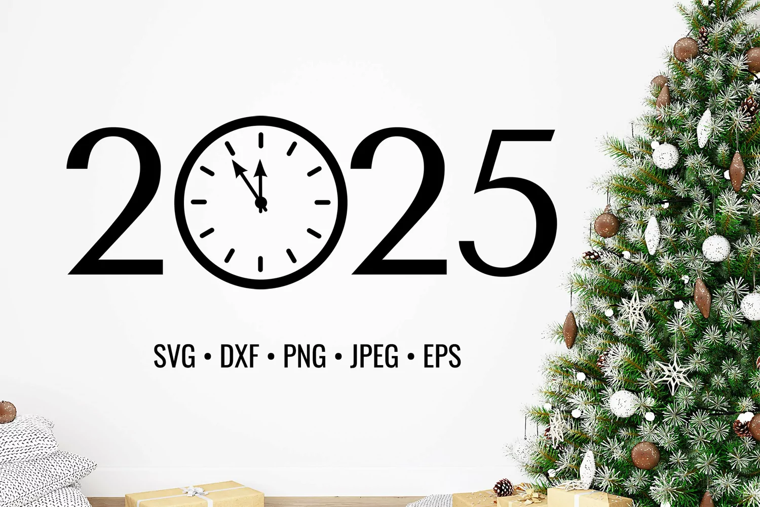 2025 with clock SVG. New Year shirt design. Holidays card