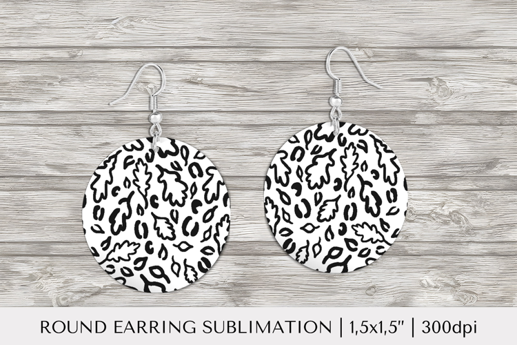 Round Print Design Autumn Fall Leaves Leopard Sublimation Earring Epoxy