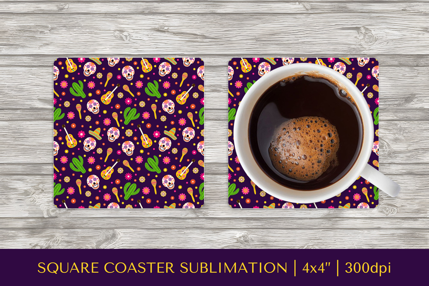 Similar Design Products to Dia De Los Muertos square coaster sublimation design PNG 004