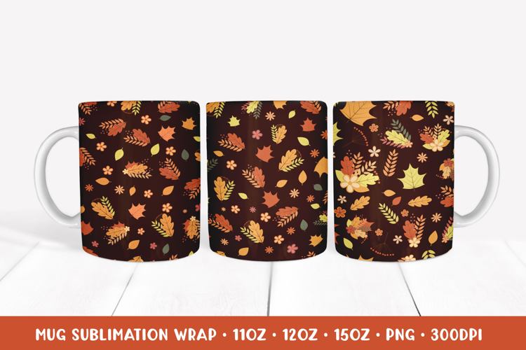 Autumn Mug Sublimation Wrap. Fall Leaves Mug Designs APM2823