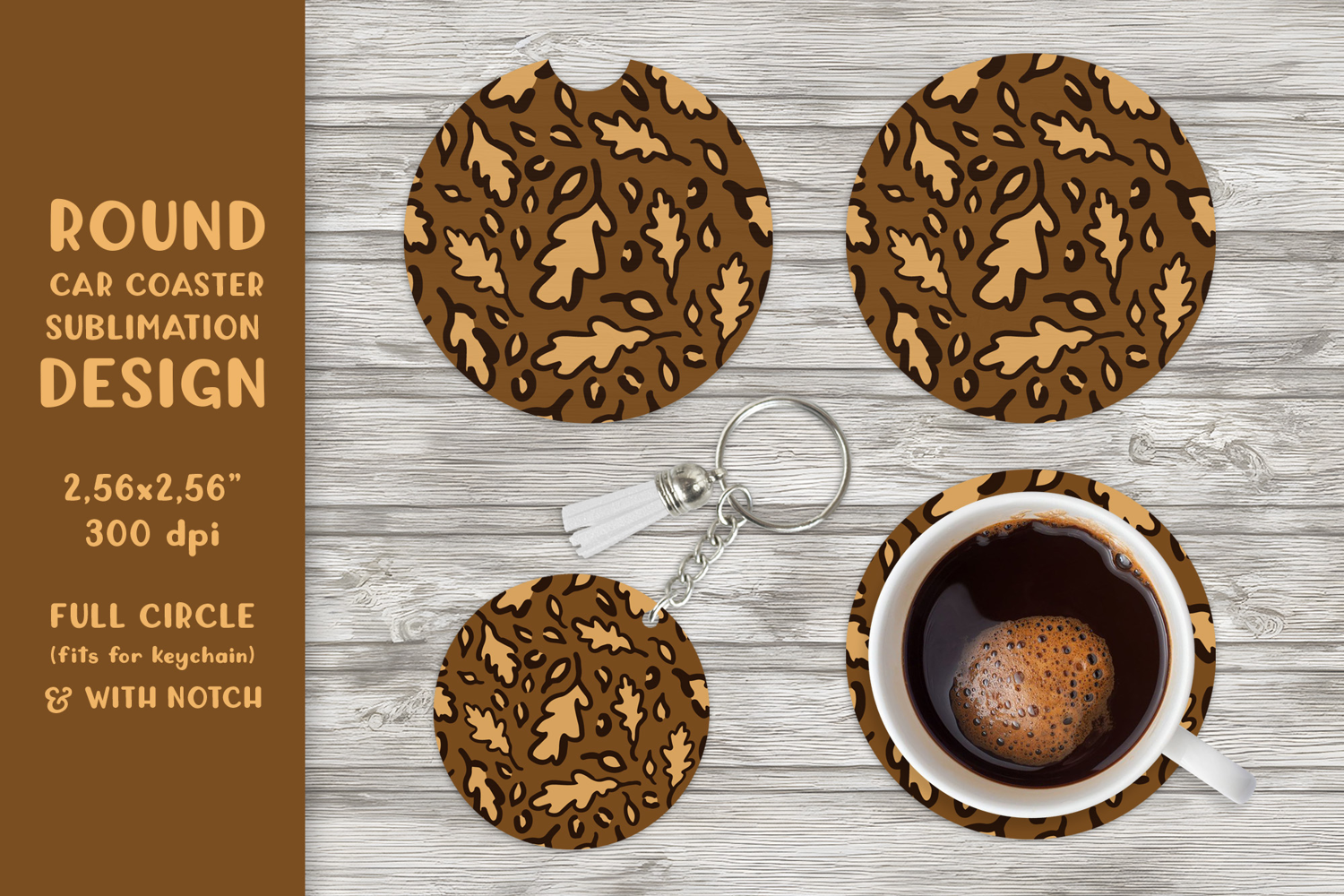 Similar Design Products to Fall leopard car coaster sublimation. Round design PNG 001